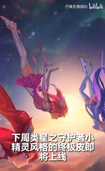 据B站资讯UP主@行离无畏契约爆料,新终极套将于下周上线,主题和之前透漏的一致,是英雄联盟中星之守护者风格的特效皮肤