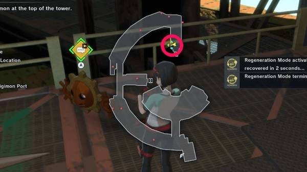 接受日轮兽的请求后,可使用其身旁的巴多拉兽(Birdramon)直接飞往中央塔顶(Central Tower: Steel Point)。