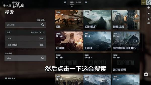 进入后在左侧下方的输入框可以输入代码,然后搜索,这里提供UP主的代码:x9za