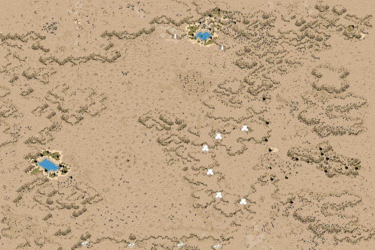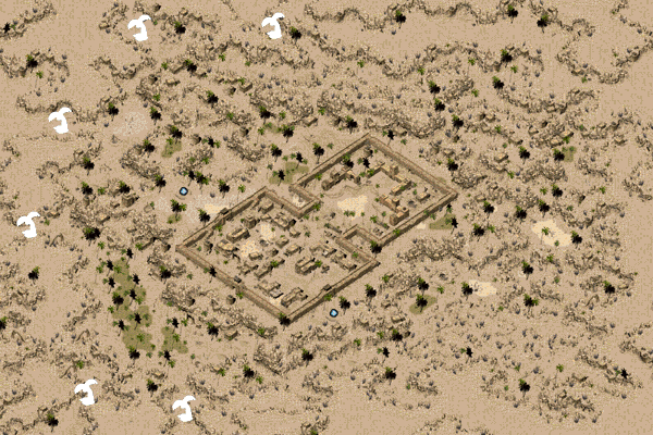 白昼,干燥而酷热的狂风卷集着密集的沙砾攒射在身上,吸入肺里的空气几乎就象燃烧的烈火,人的头脑变的非常迟钝;而到了夜里,寒风从西北方肆虐而来,灌入冰冷的铠甲,从身体到灵魂,似乎都因强烈的寒意而战栗。在他们的视野里,永远只有万里黄沙,偶而能看到的一些野兽和人类的骷髅残骸,似乎也在昭示着他们的命运。更可怕的,是一些巨大的怪物开始出现,这是一个连传说中都未出现的怪物族群,它们居然精通魔法!勇士的队伍遭受了巨大的损伤。而最终把他们推入绝境的是:清水和干粮终于消耗殆尽!