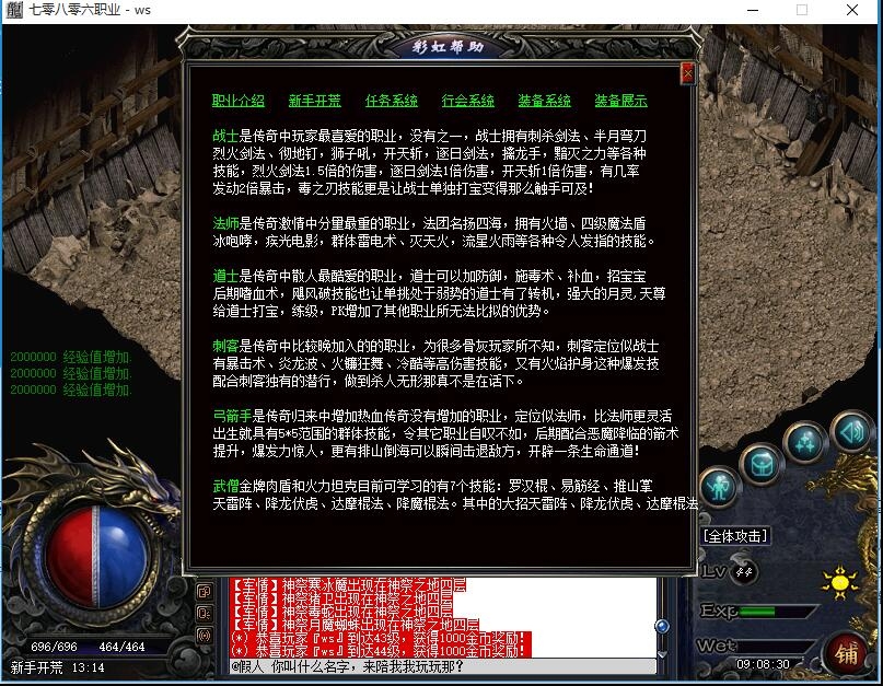 1. 这个单机我研究下了下是基于77M2引擎传奇六职业, 真六职业非世面的插件版本,真武僧,刺客,弓箭手是亮点。