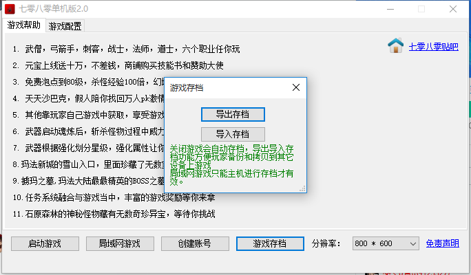 单机版可以玩,我是和朋友玩了才发出来分享给大家的,没有任何问题,需要传奇归来的客户端 ,这个单机版很好玩而且版本很不错,影响了很多人的利益,估计言论个有偏颇,大家自行斟酌,喜欢玩的就下,不喜勿喷。