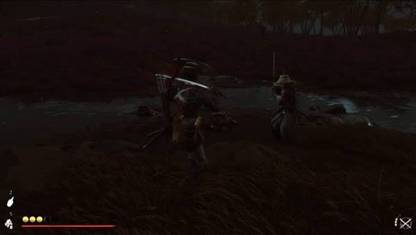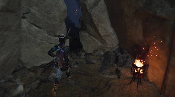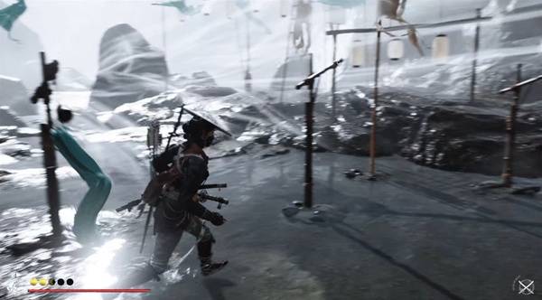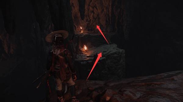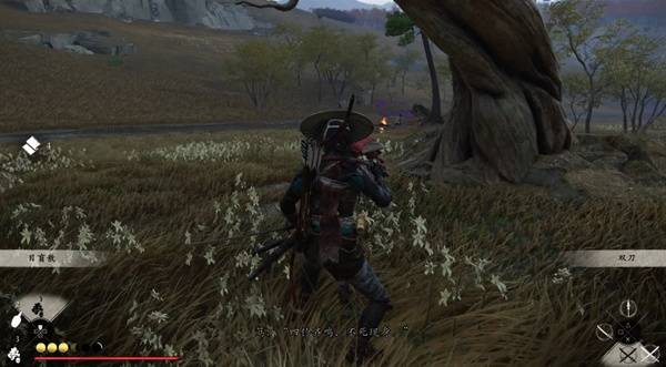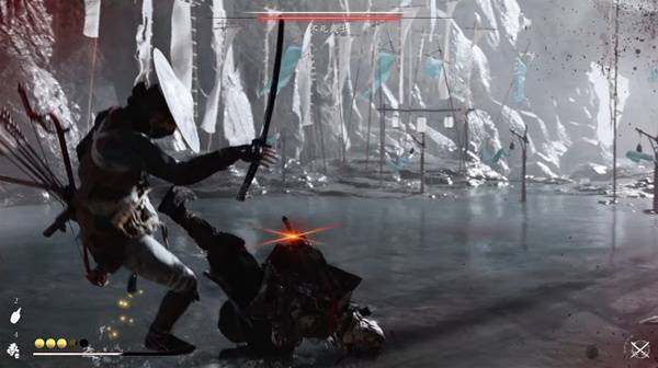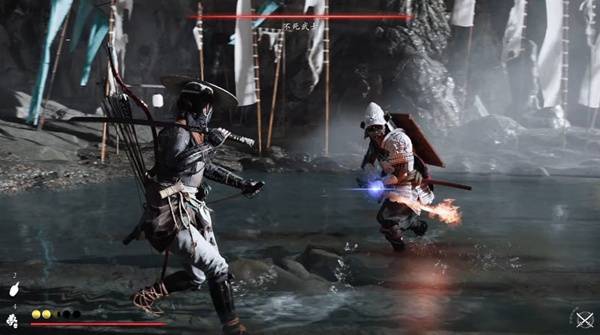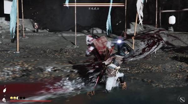 与现身的不死武士决斗,不死武士会使用火刀,然后经常会出蓝色招式,这时我们可以在即将受击前使用格挡招架然后反击。