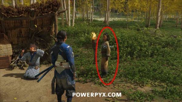 与小女孩交谈,按住触摸板切换至过去的回忆场景,在回忆场景中与站在之前小女孩所在位置的男子们对话,然后开始射箭小游戏,必须一次性击中全部6个圆环,由于只有6支箭所以不能射失任何一箭。如果失误,可以在现代时间线再次与男子交谈来重试,重试没有次数限制。