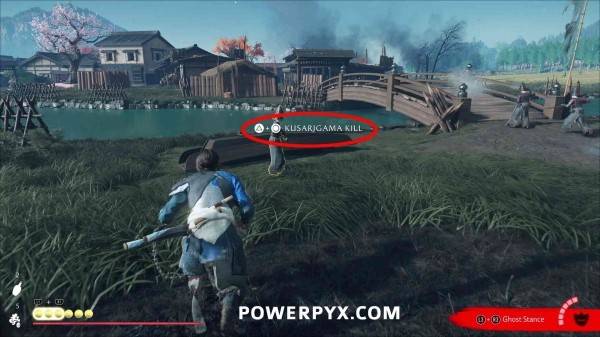解锁以上技能后,在有至少1点精力值的潜行状态下从背后靠近任何敌人,就会出现按下【△+○键】进行锁镰远程处决的按键提示。按下对应按键正确操作即可解锁奖杯。即使没有装备锁镰,也可以从数米外的距离完成此操作。