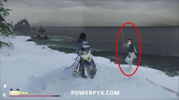 如果已清完全图了,也可在渡岛海岸-弁天渡口找到敌人。快速传送至该地的正门可直接刷新在一群敌人身后,可立即尝试完成潜行击杀。
