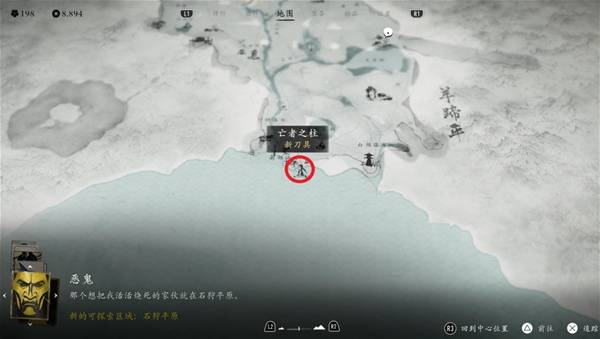 尽头可拾取阿伊努物品【雷庞库尔酒壶】,然后从右边高台跳回去,半路会自动激活旁边的【亡者之柱】传送点。