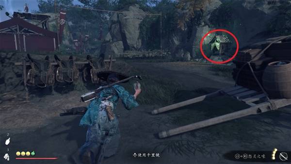 通过右边可用钩爪跳上去的树枝走到区域中心。