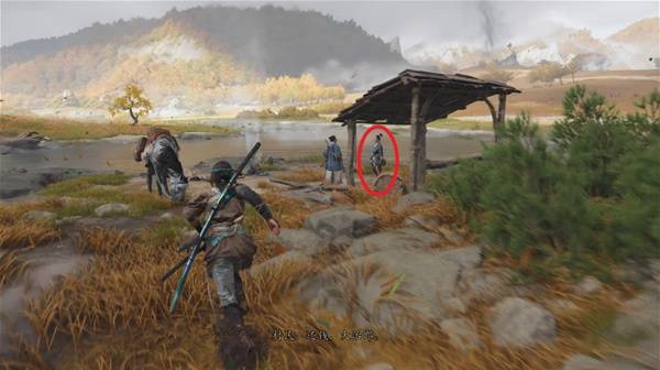 将敌人全干掉,过完剧情点燃旁边篝火,然后爬到后面和大治郎互动。