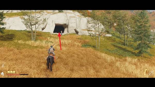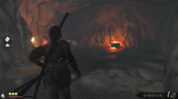 目的地洞口前有个浪人在等待,过去和他对话,一起组队往里走。