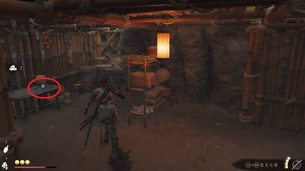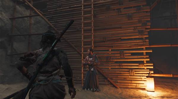 跟着浪人走到木梯前,他发现我们的真实身份,战斗结束爬梯子上去。