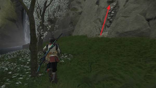 到达目的地,面对瀑布爬右侧的攀附节点到山脚下,穿过一道墙缝进入羊蹄山区域。