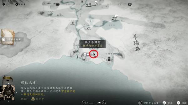 该任务位于【羊蹄草原】区域下方的【俱多乐赌坊】。