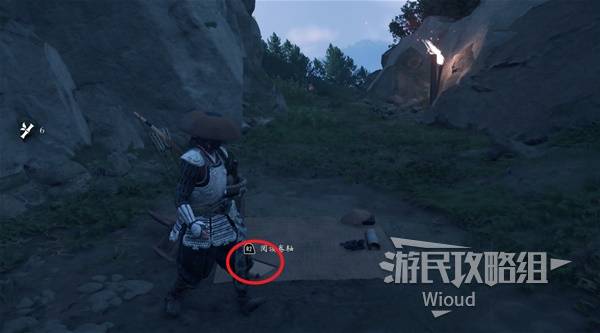 然后跟着NPC拉开墙缝,和里面的神社互动获得【猛投护身符】。