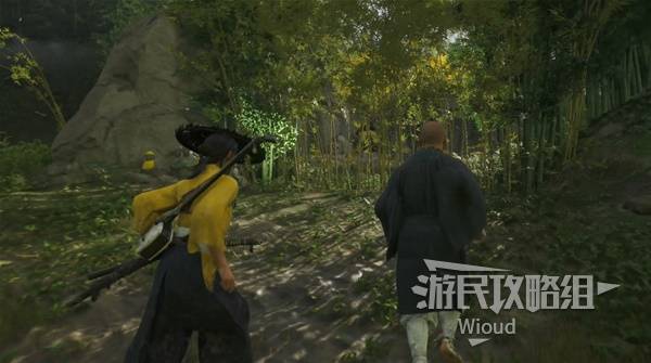 跟着僧人走到一片竹林,用到攻击发黄的竹子开一条新路。