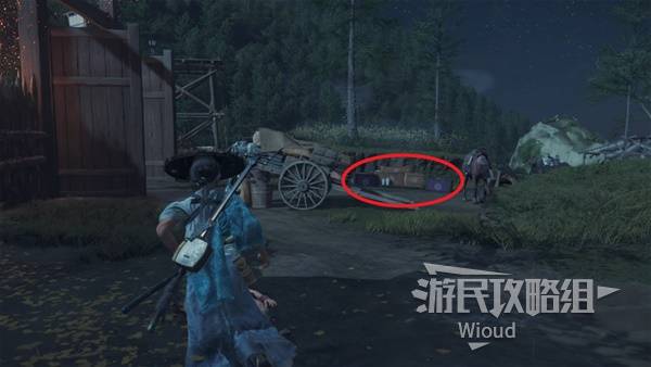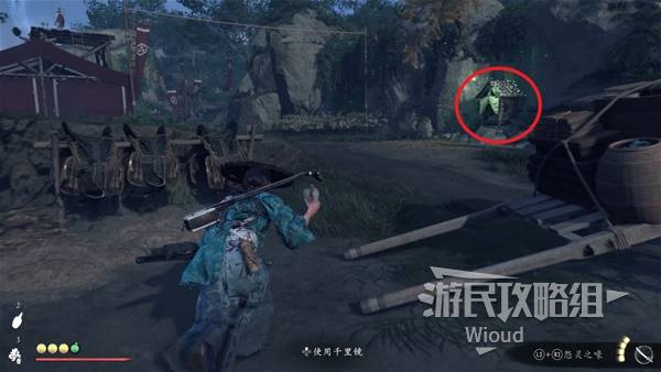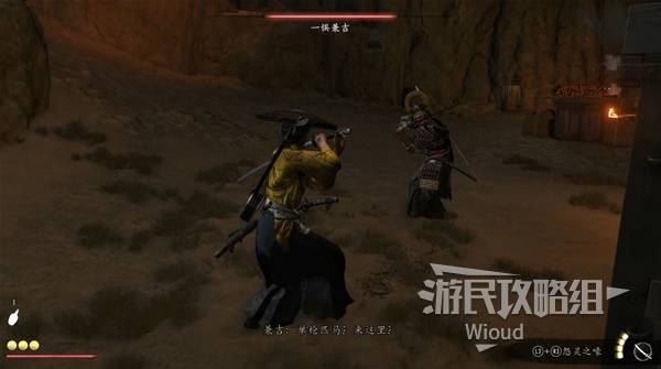 目的地沿着楼梯进入墓园,穿过一道门和右边尸体互动,此时一个同样接取悬赏的浪人进来和我们战斗。