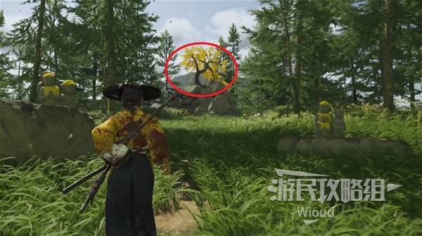 选择对应任务卡片,走到指引点会发现僧人月照就在银杏树下看着什么东西。