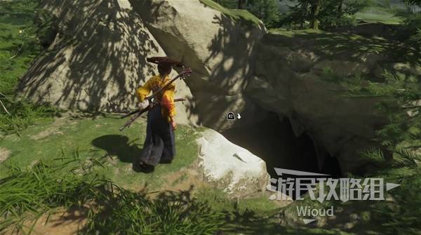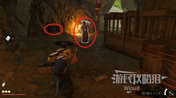 然后进入武士旁边的缝隙,来到一个洞窟。