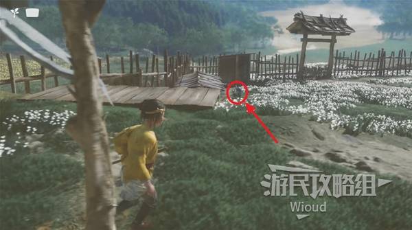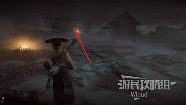 来到村庄里走到戏弄马匹的武士旁触发战斗,然后走到前面唯一有亮光的建筑。