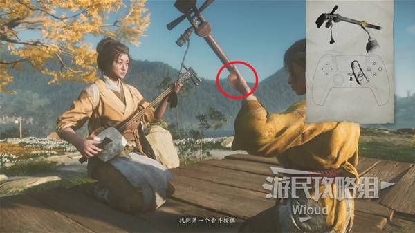 围着房子绕两圈,等十兵卫停下和他互动,然后面对房子和左边弹三味线的母亲对话,学习如何弹好三味线。