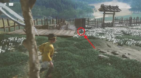 房子右侧继续往深处走,被围起来的地方有个宝箱,具体位置如下图所示。