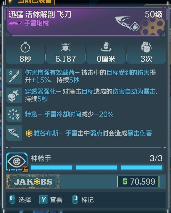 飞刀,不多说,爽就完事了,生化开打前丢一个,子弹打完丢一个,然后boss就蒸发了