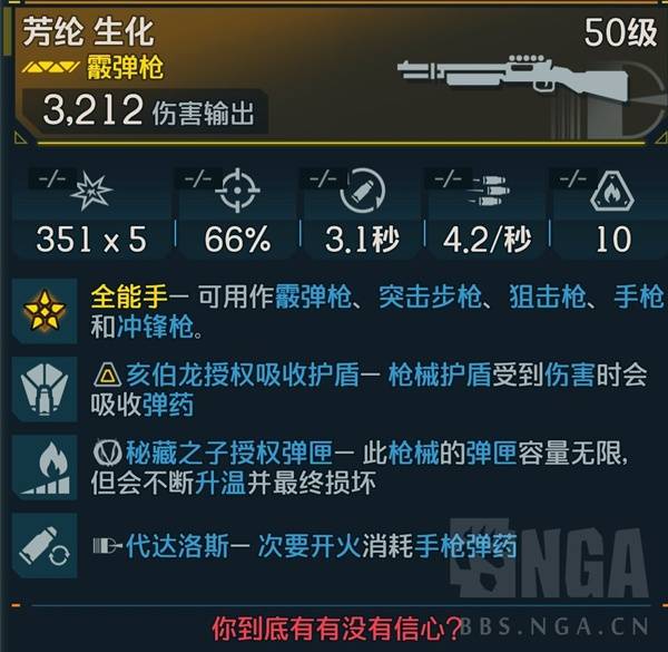生化:本身是一把连喷,同时视为所有枪械,可以高频触发暴击。词条随机性很大,如果有雅各布斯下挂还可以通过强化模组提高暴击率,刷取难度很高