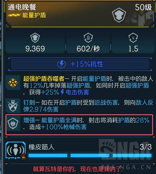推荐1:通电晚餐,此护盾效果是额外附伤,本周黑市可以购买非常容易刷到增强词条。