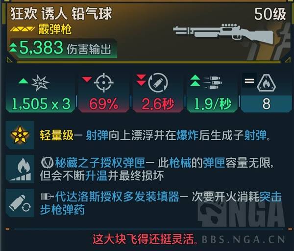 缺点:伤害无法秒天秒地,不适配粘弹类武器