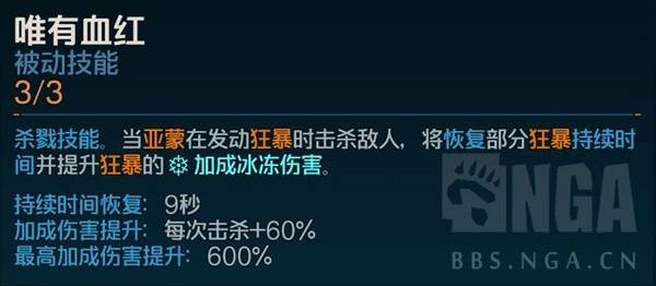 另一个核心技能是红色系中的近战附带加成伤害技能:狂暴