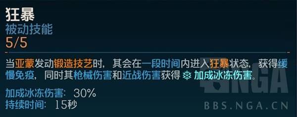 狂暴造成的冰冻附带伤害越高,这个bd的近战伤害叠得就越快,因此再点出蓝色系里的冰冻伤害和绿色系里的元素伤害