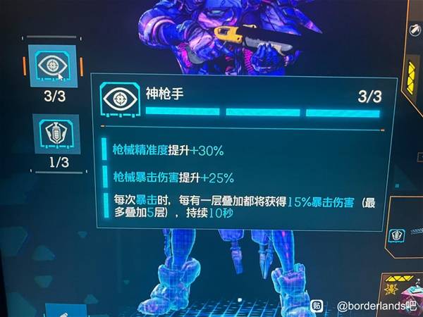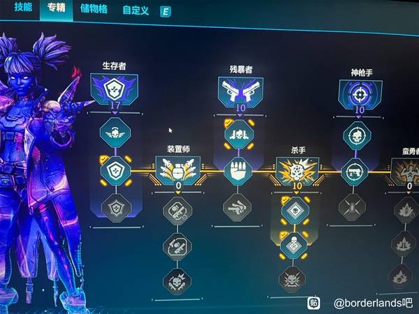 配置如图,这一套主要思路是在满血状态下通过少女巫师模组来吸盾,维持一直满盾,再配合通电晚餐来增伤,目前专精还在刷级,都没太点好,放不下了放评论区,然后这一套打混5,重击手不暴头就是轻松5w加,杀戮技能,神枪手叠起来了之后,一枪10到20w没问题,清杂一枪,清精英也很快,最多三枪吧。