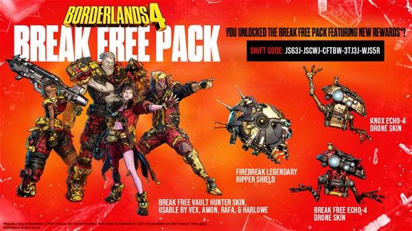 为了奖励你们为对付时间尊者及其教团付出的共同努力,特此奉上一个SHiFT代码,可兑换挣脱束缚包,内含: