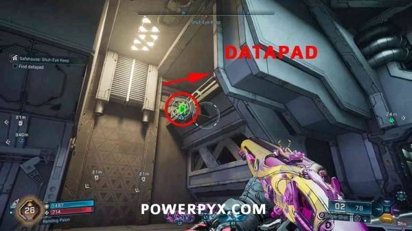 通过下方电梯到达安全屋。数据板位于安全屋最后一个房间(有自动售货机)的墙面抓钩点上方(需十字键-上扫描),拿到之后与售货机所在房间的控制台互动即可使用。