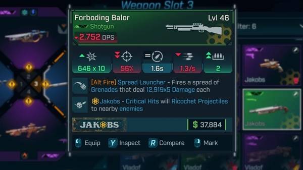 雅各布斯手枪采用左轮式设计,射速取决于玩家扣动扳机的速度,是该厂商中少有的高射速武器。它们伤害可观但弹匣容量有限,特别适合用来爆发输出,尤其是搭配托格授权配件”冲击式火箭弹”使用时效果更佳。另一方面,雅各布斯狙击枪拥有游戏中最高的单发伤害,但由于采用栓动式设计,每射击一次都需要拉栓,射速极其缓慢。值得一提的是,雅各布斯霰弹枪中有不少都是单发装填设计,虽然每次射击后都需要重新装弹,但在近距离能造成惊人的伤害。