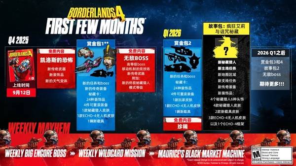 《无主之地4》在发售后也会持续保持更新,很多玩家想要知道后续更新线路,下面请看“2KGames中国”带来的《无主之地4》后续更新线路图,希望能够帮助大家。