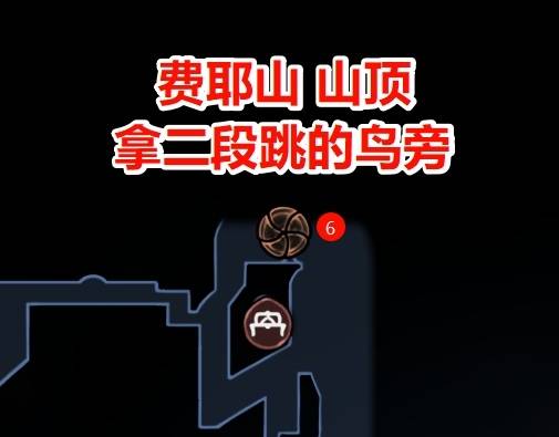 6.霜心振翼费岳阙:费耶山山顶,给二段跳的那只大鸟旁边(棕色图标所示位置)
