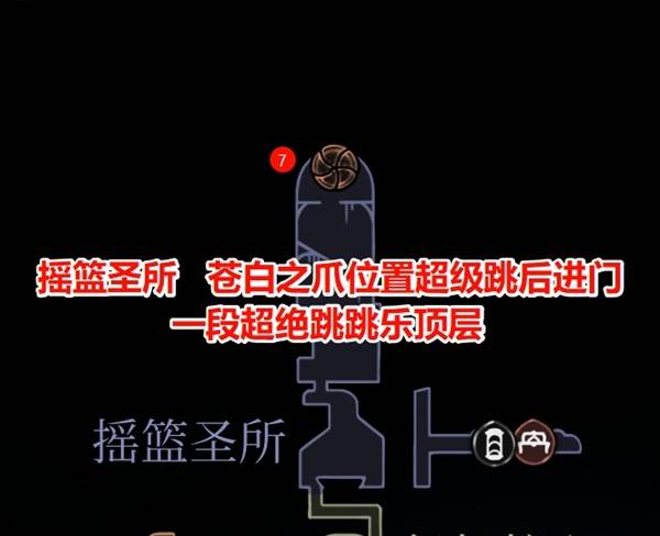 7.摇篮极顶终试炼:摇篮圣所,在苍白之爪位置(也是苍白之母的位置)使用超级跳登顶后进门,再跳一段一跳不吱声的超绝跳跳乐后顶层。