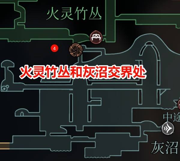 4.纺塔孤医灰沼别:火灵竹丛和灰沼交界处,即火灵竹丛椅子左下方(棕色图标所示位置)