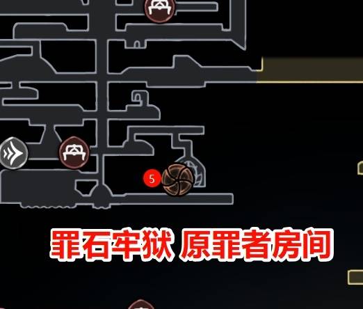 5.囚笼首罪逆丝客:罪石牢狱,关押的原罪者房间里左(棕色图标所示位置)