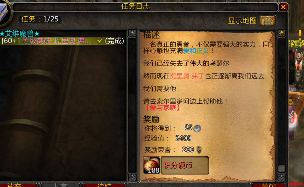 本身想设计更多的任务线,但还是只设计这两个任务即可,更多的可以选择不突破卡60等级去当怀旧服玩也可。
