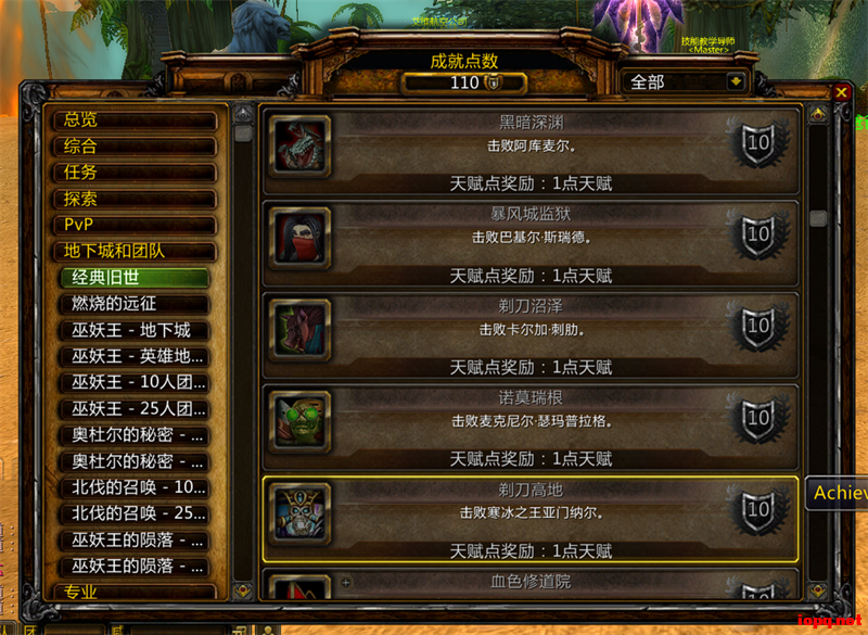 10:成就和任务奖励天赋:完成包括部分地下城、事件、自制成就等获得天赋(最终获得满天赋)